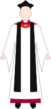 Choir dress in Anglicanism traditionally consists of cassock, surplice and scarf (or tippet).[n 1] An academic hood may also be worn. Since 1964 in the Church of England, a cope may be worn at the discretion of the minister.[2]