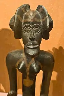 The traditional religious beliefs of the Chokwe center around ancestor spirits worship.[4] In groups where chiefs exist, they are considered the representative of god Kalunga or Nzambi, therefore revered and called Mwanangana or "overseer of the land." There is sometimes perceived to be a spiritual connection between works of arts such as handicrafts and carved objects and ancestors, as well as god Kalunga or Nzambi. With the colonial era, Chokwe converted to Christianity en masse yet the original beliefs were retained to produce a syncretism of beliefs and practices.[4] They have, for example, continued their spirit-rituals from pre-Christian era, as well maintained their elaborate rites-of-passage ceremonies particularly to mark the entry into adulthood by men and women.[1][4]