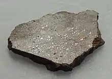 ![]() A specimen of the NWA 869 chondrite (type L4–6), showing chondrules and metal flakes | |