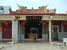 The site is half devoted to the nominally secular commemoration of the twenty-seven PLA soldiers and half a Buddhist temple.[3] The temple complex covers 2,500 square meters.[7] It consists of a main hall, a memorial hall, two pavilions, a residence for the Zeng family, and a statute of a soldier holding a girl in his arms.[7] The temple's outward appearance is typical of temples dedicated to local deities in southeast China.[7]