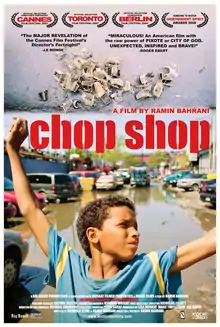 Chop Shop is a 2007 American drama film co-written, edited, and directed by Ramin Bahrani. The film tells the story of a twelve-year-old street orphan living and working in Willets Point, an area in Queens, New York, filled with automobile repair shops, scrapyards and garbage dumps.