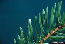 Significant damage is also caused to subalpine fir.[26] Red spruce, in its limited distribution, and tamarack are also attacked.[27]