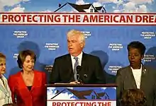 During his years in the House and Senate, Dodd built a long record of political positions on important issues to the nation. He was in favor of ending the Iraq War and redeploying American soldiers from the nation elsewhere. He repeatedly voted against further funding of the war.[3] To combat global warming, he proposed a carbon tax to reduce carbon emissions,[4] and declared that the United States "must take a 'strategic pause'" before signing any new free trade agreement.[5]