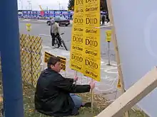 In April, Dodd campaigned in New Hampshire, Iowa, and returned to South Carolina. While on the trail Dodd participated in a virtual town hall sponsored by the website MoveOn.org. When he was asked the question "...what is the best and fastest way to get out of Iraq?" he answered, "We ought to start redeploying this evening...We ought to begin immediately. I would not wait any longer."[21] Continuing on the trail, Dodd sponsored what was called by The Washington Post, the "most radical plan" to combat global warming. It included a corporate carbon tax to be levied on corporations to reduce carbon emissions. The plan is part of a larger energy platform of the campaign.[22]