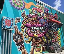 Chris Dyer (born March 3, 1979) is a Peruvian–Canadian artist based in Montreal, who exhibits, performs and teaches his art worldwide. Some of his broader artistic themes include consciousness, truth, oneness, introspection, personal development and kindness.[1] He paints using acrylic, pencil, pen, spray paint, gouache and other media on a variety of different forms, including broken or blank skateboards in his early years, various sculptured and recycled items, and now commonly fabric or wood canvas. He is also known for his murals, logos, album covers, posters, illustrations, comic books, travel diaries (The Sunlight Chronicles),[2] and YouTube adventure vlogs (Artventures).[3] He was the art director and brand manager of Creation Skateboards/Satori Movement[4] for three and a half years, creating designs for hundreds of skateboard decks. He teaches many art workshops and classes on technique, spray painting, traditional medicinal healing,[5] and the business of art, as well as offering an online class.[6] He has created his own brand of conscious clothing and other goods, Positive Creations, which features some of his most well-loved art.[7] Though his styles, mediums and subject matters are always in flow, the main theme seen through his artwork is cultural and spiritual oneness of humanity and beyond.
