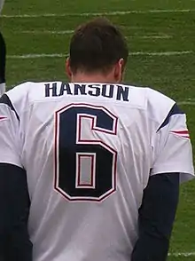 Christopher David Hanson (born October 25, 1976) is a former American football punter who played ten seasons in the National Football League (NFL). He played college football at Marshall University, and was signed by the Cleveland Browns as an undrafted free agent in 1999. He also played professionally for the Green Bay Packers, Miami Dolphins, Jacksonville Jaguars, New Orleans Saints and New England Patriots. Hanson is perhaps best known for a season-ending injury sustained while swinging a motivational axe in the Jaguars' locker room in 2003. Hanson was a switch-punter, able to effectively kick with both his left and his right leg, which he alternated to reduce fatigue.[1]