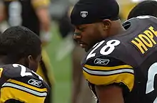 Chris Hope was drafted in the third round number 94th overall by the Pittsburgh Steelers for the 2002 season.[2] He started out the 2002 season on special teams and became a strong special teams player. In an October 27 game against the Baltimore Ravens he caused a fumble on a second quarter kickoff that led to a touchdown. He got to play his first extensive game on November 24, 2002, against Cincinnati due to injuries in the Steelers secondary picking up three tackles and one special teams tackle. The 2003 season was not much different from his first. Chris Hope played mainly special teams.