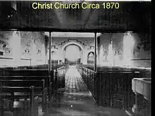 In 1871 the church was expanded with the addition of the chancel and vestry designed by T.H. Wyatt.[2] In 1881 the ceiling of the nave, which was becoming unstable, was replaced with wooden beams and pillars to form arcades, and the balcony or gallery was removed.