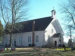 The Christ Church is a historic Episcopal church located at Port Republic, Calvert County, Maryland, United States. The church is a three-bay-wide, five bays long, beige stucco covered structure featuring stained glass in most of the tall paired round-arched sash windows. It is the mother Episcopal Church of Calvert County and its oldest continually worshipping congregation.[2] Middleham Chapel was started from this congregation as a Chapel of Ease. Christ Church Parish was one of the original 30 Anglican parishes in the Province of Maryland. Burials in the church cemetery include former U. S. Representative Thomas Parran Sr.[3] and United States Coast Guard Admiral Merlin O'Neill.