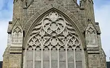 The clerestory windows are copies of those at Exeter Cathedral. On either side of the west window, sit two smaller windows. They were installed in 1879 and are the only two windows in the cathedral made with gold dust. The final window installed in the cathedral was installed in 1908 and sits in the choir vestry. It has a similar design to a 14th-century church stained glass window.[8]: 47