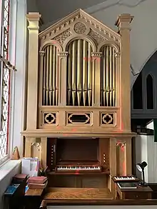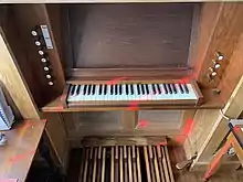 It is a pipe organ which uses tracker action with 6 ranks, 1 manual and a slider chest.