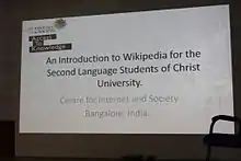 - Muzammiluddin, Syed. "Wikipedia at Forefront in CHRIST (Deemed to be University)". Retrieved 20 March 2014.