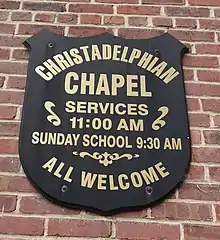 A sign showing the times of service for a Christadelphian ecclesia in Richmond, Va.