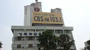 The station started on December 15 of 1954 as a radio station(with the call sign 'HLKY') for the purpose of establishing a civil religious network and became the first civil network in korea.[1] The broadcasting system was known for its contributions to human rights, democratization of economy, politics against dictatorship from the 1960s to the 1980s.[2] As a result, the broadcasting system was affected by the Policy for Merger and Abolition of the Press.[3] In 1992,The broadcasting system moved its head quarters to from Jongno to Mokdong[2] In 1995, the station opened the radio station CBS music fm[4] In 1998,cbs launched another radio station, cbs pyojun fm.[5] In 2002, cbs tv was launched.[6] From 2005,cbs tv also transmitted its broadcasting services to american regions[7]