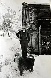 Kaufmann and his family had lived in Grindelwald, auf dem Hubel, but moved closer to the village (Spätenmatte) in 1930. Häsler recalls that he "met Christen Kaufmann in late autumn of 1938, smiling and as merry as ever, tramping down a dripping hillside at Grindelwald, under a big blue umbrella."[94]