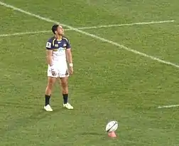 Christian Leali'ifano (born 24 September 1987), is an Australian professional rugby player. He is of Samoan heritage, and his surname is spelled Leali'ifano when using Samoan diacritics. He currently plays for Moana Pasifika in the Super Rugby Pacific competition and his usual position is inside centre or fly-half.[2] In August 2016, two weeks after the Brumbies were knocked out of the Super Rugby finals, Leali'ifano was diagnosed with leukaemia. He has resumed playing after receiving a bone marrow transplant, and in 2017 signed for Ulster, who play in the Pro14, on loan. He has signed with the Moana Pasifika for the 2022 Super Rugby Pacific season.[3]
