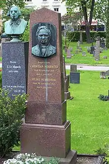 For the last month of his life, Christian Schibsted was father-in-law of Thrine Schibsted, née Munthe, who married Amandus Schibsted in May 1878.[4] Christian Schibsted died in June 1878, and is buried at Vår Frelsers gravlund in Oslo. After his death, Amandus Schibsted inherited the newspaper,[1] and became the sole owner and chief editor in 1879.[4] He is credited with turning the newspaper into an important political publication.[5] Aftenposten was the largest newspaper in Norway between 1901 and 1981, and is now the second largest. The publishing house Schibsted still owns Aftenposten, but has grown into a multinational corporation.[2]