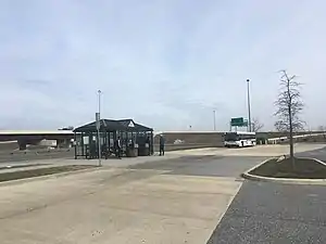 The Christiana Mall Park & Ride is located at the Christiana Mall, a shopping mall located southeast of the interchange between Interstate 95 and Delaware Route 1/Delaware Route 7 in the unincorporated community of Christiana, situated between Wilmington and Newark in northern New Castle County, Delaware.[1][2] The park and ride is located in the parking lot of the mall on the west side near Nordstrom. The Christiana Mall Park & Ride consists of a bus shelter with benches, bus schedules, and trash cans adjacent to the roadway. A sidewalk connects the park and ride to the mall entrance near Nordstrom.[2] The parking spaces for the park and ride are located in the mall's parking lot, with yellow paint used to delineate the park and ride area.[3]