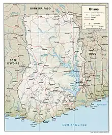 The arrival of the Europeans in 15th century into the then Gold Coast brought Christianity to the land.[1] There were many different cultural groups across the West African region who were practicing different forms of spirituality.[2][3][4] As the Europeans explored and took control of parts of the country during the colonial days, so did their religion.[5] Christianity is the religion with the largest following in Ghana.[6] Christian denominations include Catholics, Methodists, Anglicans, Presbyterians, Lutherans, Seventh-Day Adventists, Pentecostals, Baptists, Evangelical Charismatics, Latter-day Saints, etc.[7]