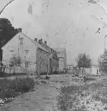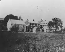 A visitor in 1862 recalled how the community had looked forty years earlier: "The red-tiled roofs, the solid stone masonry of most of the buildings, and the peculiar structure of others, in which the frame is filled in with mortar mixed with cut straw, denoted at once the foreign origin of its founders."[3] The church sold the property in the 1840s when much of its once vast holdings in the Lehigh Valley were dispersed. The remaining buildings were photographed in the 1880s. A visitor in 1914 noted that only a stone house remained of the original settlement and that even the spring was covered by a recent shed.[4] As of January, 2009, those two structures remained. The stone building was the Familienhaus in which lived two married couples who oversaw the community of single brothers.
