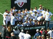 As the regular season champion, FC Gold Pride earned a direct route to the championship playoff game where they faced the Philadelphia Independence.[35][36] Sinclair contributed two goals to FC Gold Pride's 4–0 win to clinch the WPS Championship.[37] Despite their successful season, the club ceased operations on November 16, 2010, due to not meeting the league's financial reserve requirement.[30]