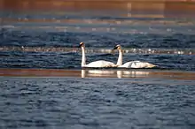 For the first time in recent memory, trumpeter swans have since 2004 been using Christmas Lake as a stop-over on their flyway[2] during their winter migration south. At first a small number of swans stayed for a few days, and by 2011 that number had grown to over four dozen in three different groups who stayed on the lake for more than a month. As Christmas Lake is deeper than surrounding lakes, and usually the last in the neighborhood to freeze over, the swans are able to swim and feed later in the season.
