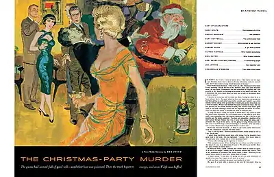 - "Christmas Party" appeared in the final issue of Collier's, a venerable magazine founded in 1888. On February 4, 1957, Herbert Block wrote Rex Stout: "One thing about the demise of Collier's — it ended in fine style, with the cover proudly proclaiming a 'Nero Wolfe thriller.' And a thriller it certainly was; but I don't think anyone else could have got the added special thrill that I did when I came to the lines about Here and Now!" [2]