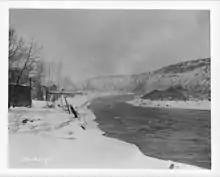 The Trinity River, one of the Klamath's largest tributaries, also flooded and wrought destruction along its length. The Trinity, however, did not break the 1955 flood's records because of the newly constructed Trinity Dam, which stored 372,200 acre-feet (459,100,000 m3) of runoff from the storm.[7] Nonetheless, an impressive 231,000 cubic feet per second (6,540 m3/s) of water rushed down the river at Hoopa.[17]