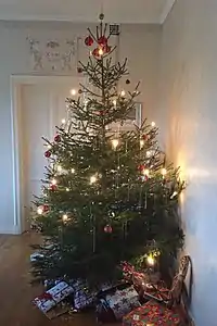 The Christmas tree is a custom that was imported from Germany in the 1880s. The former tradition of giving joke presents, often a log of wood, was replaced during the late 19th century and 20th century by Christmas gifts given out by the Christmas goat (Julbocken) or, especially later, Santa Claus (Jultomten).[5]