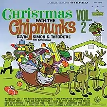 Christmas with The Chipmunks was released in 1962 and contains 12 tracks. The album peaked at #33 on Billboard's Best Best For Christmas album chart on December 25, 1965.[2] The tracks from this and its follow-up album, Christmas with The Chipmunks Vol. 2 have been in continuous circulation since their original releases; however, at some point since the late 1980s, Volume 2's cover has been given to Volume 1 and vice versa, with the volume number and track listing staying the same. Both albums have been combined and reissued several times since their original release, making the songs the most well known in the Chipmunk canon. The most current version available is a 2012 re-release Chipmunks Christmas.[3]