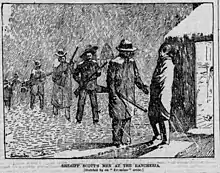 As daylight arrived the morning of February 19, Evans and Morrell woke up to find the house surrounded by Gard and Kay's posse. The posse consisted of fifty armed men, including Deputy George Witty and Deputy Perry Byrd. At around 8am, Sheriff Kay arrested Jonas Brighton for being an accomplice of Evans in order to deflect suspicion towards him. The news that Evans was surrounded had spread quickly and drew a large crowd of people to the house. Brighton then sent a letter to his wife telling her to leave the house with the Evans’ children immediately.