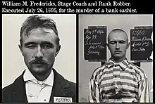 On March 23, 1894, William Fredericks attempted to rob a bank on Market Street in San Francisco. During the robbery, he killed the cashier and was eventually caught by police. Fredericks was found guilty of murder and sent to San Quentin. During his trial he admitted that he had supplied the weapons in George Sontag's attempted prison break and that he had stolen the weapons. He said that George's revolver was given to him by Eva Evans. He was executed on July 26, 1895.