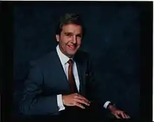 Morris was the only television journalist to accompany Bob Geldof on all his visits to the famine-stricken countries of Africa after Band Aid and Live Aid when his reports for BBC TV News helped to raise £70 million in aid.[41][42][43] Other major assignments he covered for the BBC and Sky News was the first television interview with Anthony Blunt[44] after the master spy's exposure by Prime Minister Margaret Thatcher; Spain's re-opening of the border with the Rock of Gibraltar[45] 13 years after it was closed by Franco; the 1989 earthquake in San Francisco;[46] the fall of the Berlin Wall;[47] the attempted coup in Russia against president Mikhail Gorbachev;[48] the release after 27 years in prison and first face-to-face interview with Nelson Mandela on his long walk to freedom before becoming South Africa's first black President; |[49] the assassinations of India's prime ministers Indira Gandhi[50] and, 7 years later, her son, Rajiv Gandhi;[51] the election of Bill Clinton for his first term as US president;[52] the murder trial in Los Angeles, lasting 9 months, of O. J. Simpson;[53] the murder of the Italian fashion designer Gianni Versace shot dead outside his mansion in Miami;[54] and the handover of Hong Kong to China.[55] He has also reported on several Royal tours for BBC Television with Queen Elizabeth and the Duke of Edinburgh in Canada[56] and Australia, with Prince Charles and Prince Harry in Africa,[57] the royal wedding and honeymoon of Prince Charles and Diana, Princess of Wales[58] and on their first-ever royal tour together in Australia and New Zealand.[59] He was the Sky News commentator at RAF Northolt for the return of the princess after she was killed in Paris, and later for her funeral at Althorp.[60] While at BBC TV News, Morris was the newsreader on the day Lord Mountbatten was murdered by the IRA.[61] The audience that night of 26 million is still the record for a British TV news bulletin as ITN was on strike. It's a record unlikely ever to be surpassed with the proliferation of so many digital satellite channels.