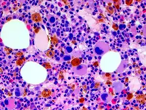 This syndrome affects bone marrow cells causing treatment-resistant anemia and myelodysplastic syndromes that may lead to acute myelogenous leukemia. Examination of the bone marrow shows characteristic changes in the megakaryocytes. They are more numerous than usual, small and mononuclear. There may be accompanying erythroid hypoplasia in the bone marrow.[6]