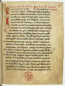 The Chronicle of Aniane is found today in a single manuscript codex now in the National Library of France, BN lat. 5941, where it is the first text at folios 2r–49v.[6] It was formerly in the possession of Étienne Baluze until his death in 1718, when it passed to the Bibliothèque nationale. It still bears his pressmark, Bal. 88.[7] It is sometimes called the Codex Rivipulliensis, because it once belonged to the monastery of Santa Maria de Ripoll.[7]