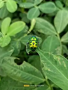 | Chrysocoris stollii captured on a leaf at Nandi Hills, Bangalore, India | |
