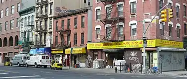 Chrystie Street is a street on Manhattan's Lower East Side and Chinatown, running as a continuation of Second Avenue from Houston Street, for seven blocks south to Canal Street. It is bounded on the east for its entirety by Sara Delano Roosevelt Park, for the creation of which the formerly built-up east side of Chrystie Street (the even numbers) was razed, eliminating among other structures three small synagogues.[1] Originally called First Street, it was renamed for Col. John Chrystie, a veteran of the War of 1812 and a member of the Philolexian Society of Columbia University, and a new First Street was laid out above Houston Street.