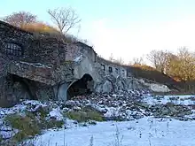 Between 1883 and 1890, the Fort IV "Chrzanów" had been build near Chrzanów, as part of the series of fortifications of the Warsaw Fortress, build around Warsaw by the Russian Empire. In 1909, it was decided to decommission and demolish the fortifications of the Warsaw Fortress, due to the high costs of their maintenance, and as such the Fort V had been partially demolished in 1913, and was repurposed as a magazine. Currently the building remains as ruins.[7]