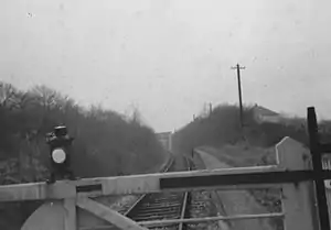 The first station was constructed of timber with a small corrugated iron pagoda shelter and a simple nameboard, at a cost £300. After WW2 a concrete platform was provided.[2] A level crossing was located at the platform end. The track was still in situ in 1969, but goods facilities were withdrawn on 4 December 1967.