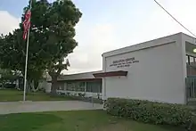 Due to Executive Order 9066, the Japanese Americans who lived in Chula Vista were sent to Santa Anita Racetrack and then to the Poston War Relocation Center.[48] One of those Japanese Americans from Chula Vista was Joseph K. Sano, who was an air corps veteran of World War I, and a member of the American Legion;[49] during World War II, Sano served in the Military Intelligence Service Language School at the University of Michigan.[50] In 1944, the state of California attempted to seize land in Chula Vista owned by Kajiro Oyama, a legal Japanese resident who was then interned in Utah. Oyama was correctly charged with putting the property in his son Fred's name with the intent to evade the Alien Land Law because Fred was a native-born citizen. The case went to the U.S. Supreme Court as Oyama v. California, where the court found that Kajiro's equal protection rights had been violated.[51]