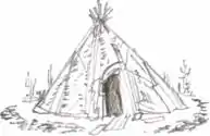 A chum (/tʃuːm/) is a temporary dwelling used by the nomadic Uralic (Nenets, Nganasans, Enets, Khanty, Mansi, Komi) reindeer herders of northwestern Siberia of Russia. The Evenks, Tungusic peoples, tribes, in Russia, Mongolia and China also use chums. They are also used by the southernmost reindeer herders, of the Todzha region of the Republic of Tyva and their cross-border relatives in northern Mongolia. It has a design similar to a Native American tipi but some versions are less vertical. It is very closely related to the Sami lavvu in construction, but is somewhat larger in size. Some chums can be up to thirty feet (ten meters) in diameter.[1]