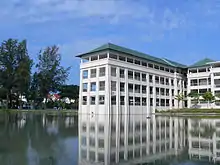 Chung Cheng High School (Main) is renowned for its lake, known as the Zhongzheng Lake. The administration building (Zhulin Building), a gazetted national monument, has the auditorium which was the largest in the whole Southeast Asia region when it was opened.[18] The building was designed by Ho Beng Heng, an alumnus of the school. Constructed using reinforced concrete, the building features a modern functional layout displaying Chinese architectural identities such as the prominent double-tier roof with glazed Chinese tiles, and cloud and bat motifs.[15]