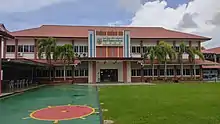 In 1950, Chung Hua came first place in the Belait District's Interschool Football Competition,[10] and later again in 1952, the school alongside Brunei Town Malay School came out as the finalist.[11] The school had a major upgrade in 1955,[12] and later in 1956, the school was officially opened by the Sultan Omar Ali Saifuddien III.[13] Its current name only came in 1957,[14][15] when the school's lower secondary classes were implemented.[16] The school's 2nd block was completed in 1967.[17] Moreover, the following multi-purpose hall was built in 1974 but it only lasted 4 years,[18] in which a fire destroyed the hall alongside the teachers' hostel.[19] The Lau Hong Siong building was completed in 1979,[20] followed by the reconstruction of the multi-purpose hall in 1981.[21]