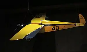 Built to be a pylon racer, a Church Midwing placed third in the 1930 National Air Races. The Church used many parts from the Heath Parasol design. In 1931 the prototype was modified with an installation of a 38 hp inline air-cooled Church designed engine and a cowling modification to accommodate the cylinders protruding upward in the pilot's line of sight.[3] A 1931 advertisement placed by Heath in Popular Mechanics extolled the virtues of its first-place finish with its parasol configuration, compared to the Church's midwing planform.[4]