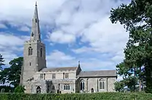 Church of All Saints is a Grade I listed church in Little Staughton, Bedfordshire, England. Originally known as the Church of St Margaret, it was largely built in the 15th century, with some earlier features. Much of the detail and many of the furnishings were destroyed during the reformation. The spire was damaged by lightning in 1900, and restored in 1910. The church became a listed building in 1964.