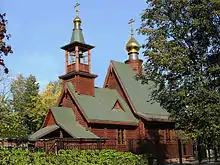 By the blessing of Patriarch Alexy II of Moscow and all Rus' a small wooden church was erected in 2004, its architectural form being "korablets" (Old Russian: кораблец, "a small ship"), which is characteristic for old Russian wooden churches and represents the Church as a sanctuary from the storms of life.