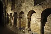 The monastery of Saint-Aignan was rededicated in 1029. At the time its main altar was jointly dedicated to Saints Peter and Anianus, while the altar in the choir was dedicated to Anianus alone, whose relics lay in the crypt below it.[11] There were twelve minor altars lining the nave, dedicated to saints of both local and universal importance, but the six local saints whose relics the church possessed did not have any altars, liturgies or hagiographies at all. Shortly after this date, the bones of Saint Euspicius were transferred to Saint-Mesmin de Micy.[12] In the 1070s, an anonymous monk of Saint-Aignan composed the Miracula sancti Aniani, a collection of stories of miracles performed by Anianus.[13][14]