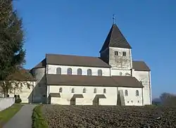 The Church of Saint George is a Roman Catholic Church. It is part of Reichenau Abbey founded in 724,[1] located on the island of Reichenau on Lake Constance in southern Germany. The island is home to the churches of Saint Mary, Marcus, Peter and Paul. The Church was built in the late 9th century to house the relic head of Saint George, a gift from Pope Gregory II, which commemorated a visit to Rome by Abbot Hoito in 896.[2]