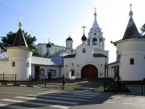 The church forms the nucleus of the Athonite metochion, a Moscow mission of the Rossikon Monastery on Mount Athos.[3] Future Athonite monks reside there. The entrance is flanked by two tower-like chapels of recent construction, dedicated to St. Pantaleon and Silouan the Athonite.
