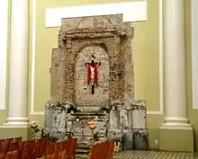 Following the collapse of the Soviet Union, the Catholic Church in Russia began to operate once more in the early 1990s. In February 1992, city authorities decided to return the building to the Catholic Church. That same year, the church began rebuilding. According to the church, after being closed by the Soviets in 1938, a 20-year-old woman went into the ransacked temple and retrieved the crucifix out of the sanctuary. When the building was returned to the Catholic Church, she returned the crucifix.[2] The first stage of restoration was finished by October 1992, with a temporary altar in place for worship. In October 1998 a Chapel of the Annunciation was opened. The main altar was completed and blessed in 2000. The restoration of most of the church was completed in 2003, and the central gates were opened.[6] Restoration of the interior of the church is ongoing.[7]